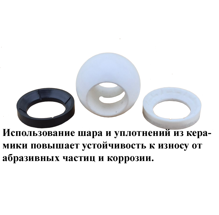 • благодаря керамическому шару и керамическому уплотнению шара, кран более износоустойчив к абразивным частицам в рабочей среде