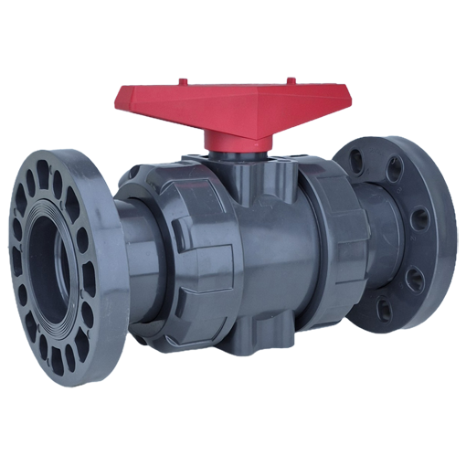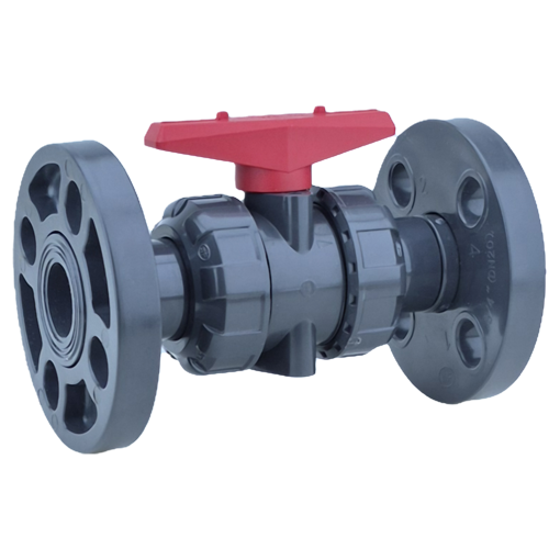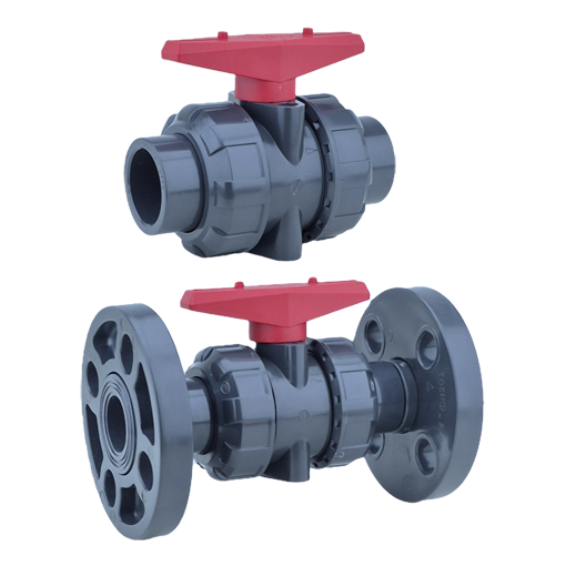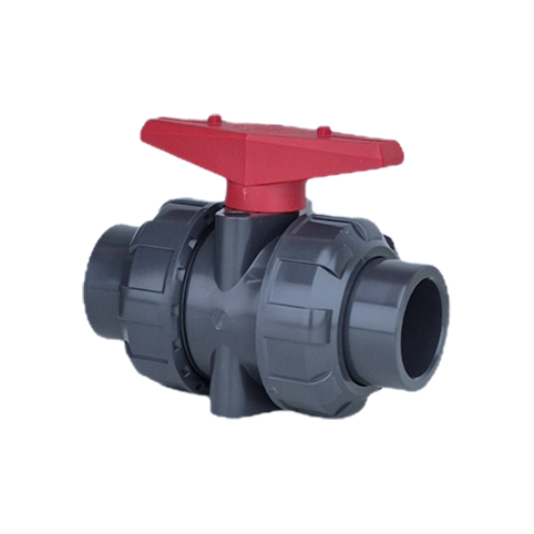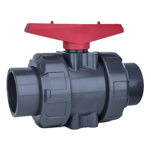 Двухходовой разборный шаровой кран из ПВХ с ручным приводом DN 15-100 мм.