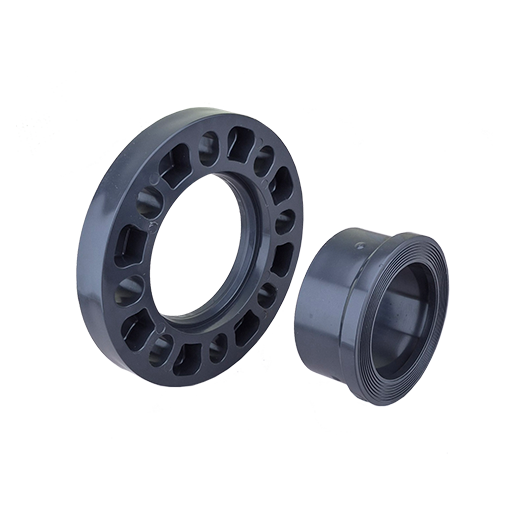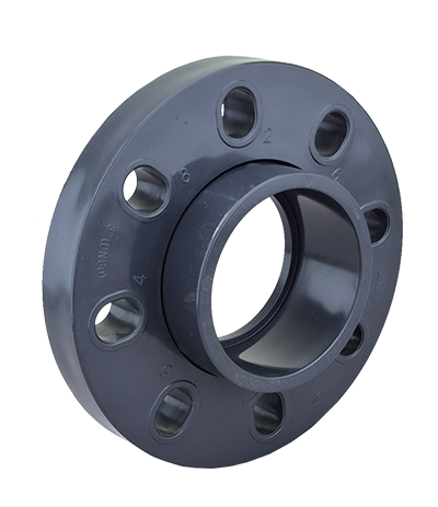 Фланец из двух частей (свободный фланец и бурт) материал ПВХ. Соединение под раструбную склейку труб d20-225 мм.